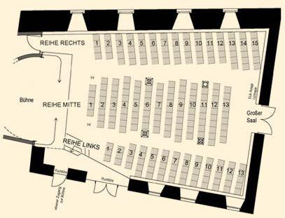 Bei der Konzertbestuhlung mit 240 Plätzen besteht die Möglichkeit, die Stuhlreihen zu