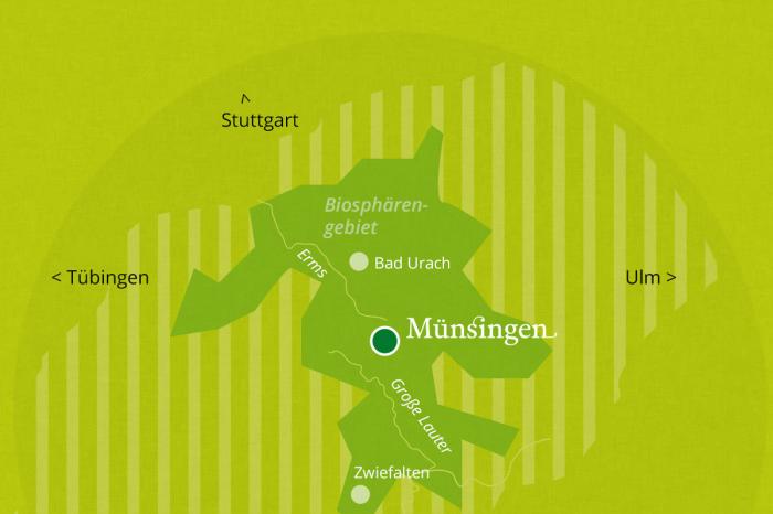 Sie verlassen die Autobahn A8 bei der Ausfahrt "Merklingen" in Richtung Laichingen/Münsingen und folgen der L230, die Sie direkt nach Münsingen führt. Der Weg ist ausgeschildert.